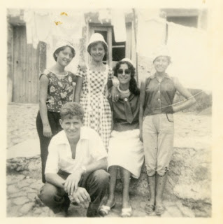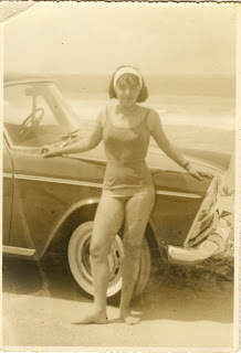 Tentem descobrir nesta fotografia da tia da minha mulher como as modas se alteram com o passar dos anos...Nesta época as toalhas de praia eram diminutas e os fatos de banho enormes... Agora é exactamente o oposto: as toalhas são enormes e os fatos de banho....